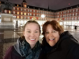 Over the last few days I have meet so many people! From family to new friends, it has been so amazing! My great aunt (pictured in third row, far right photo) picked me up from the airport on Tuesday and I stayed with her, which allowed me to meet my "cousin", Amanda (not actually cousins but very close family friend, pictured in second row, far left photo on the far left). On Wednesday, my great aunt helped me move into my apartment. Only one of my roommates is here and she is a sweet older lady named Pili. Her brother, Pepe, owns the apartment and they are both so awesome! They are actually from Madrid and Pili has lived in Madrid her whole life. She showed me around Getafe (the subdivision of Madrid I'm staying in) on Thursday, which was super helpful! On Friday, the university hosted a Welcome Day for all the international students and it was so incredible to see how many countries were represented there and how willing people were to make new friends. On Saturday, I went to el Museo de Prado with two friends, Natalia and Armana (pictured in bottom right photo) and afterwards Armana (pictured in bottom right photo on the far right) and I explored a bit of Madrid for a place to eat. We went to an event for international students that night as well (all the blueish lighting photos). I have explored a lot of Madrid, but there is still so much to do. I love soaking in the culture and history all around me. I also start classes tomorrow and I think I'm going to like my schedule.